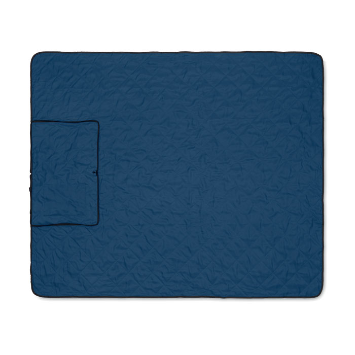 Складной стеганый плед для пикника с пластиковым покрытием PEVA с одной стороны. Складывается в удобную сумку на регулируемом плечевом ремне с большим боковым карманом.