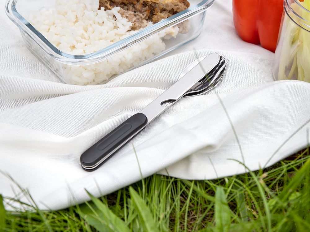 Набор столовых приборов Campsite — неотъемлемая часть любого похода или пикника. С таким компактным набором любое времяпрепровождение на свежем воздухе станет заметно комфортнее: ложка, вилка и нож не занимают много места и легко раскладываются на три отдельных прибора для использования по назначению.