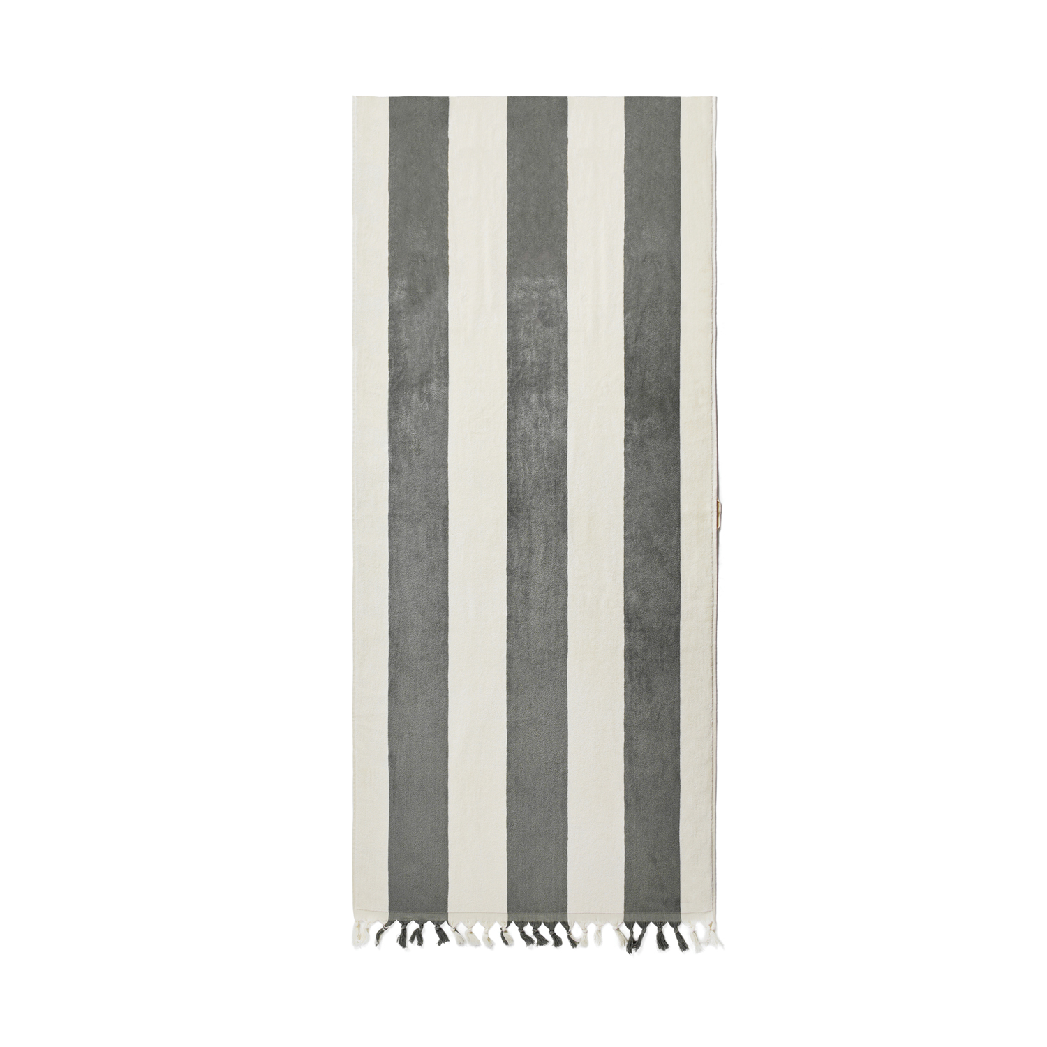 Хлопковое пляжное полотенце с кисточками и карманом для шезлонга. Наслаждайтесь вашим отдыхом, а полотенце будет надежно закреплено. Произведено в Индии из 100% органического хлопка. Плотность ткани 450 г/м². Сертифицировано GOTS (Глобальный стандарт органического текстиля).