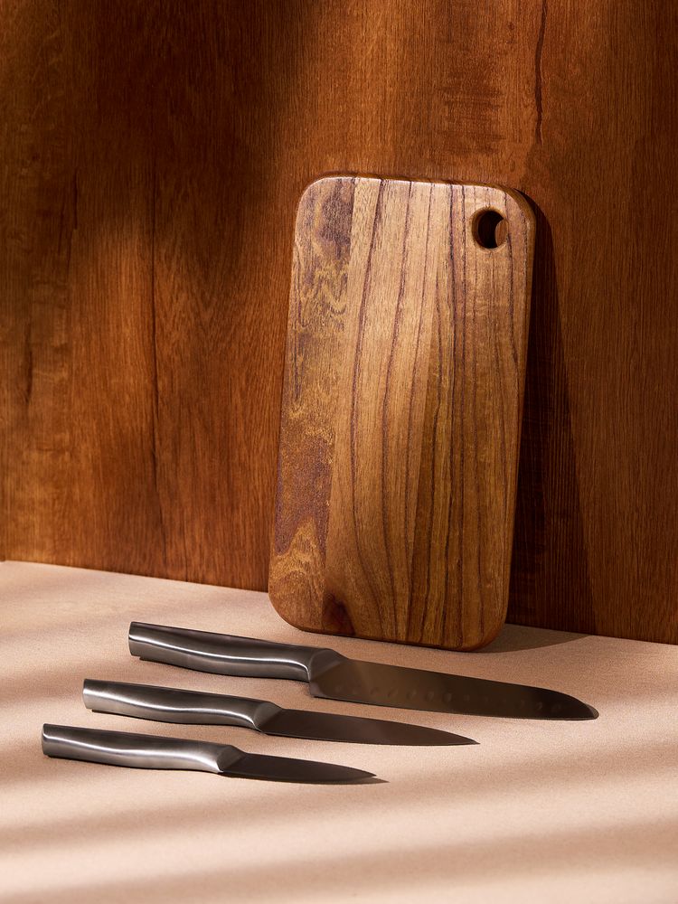Этот компактный и стильный набор аккуратно упакован в лаконичную сумку и всегда готов к действию. Три ножа со сбалансированными лезвиями и прочная деревянная доска — персональный арсенал для любителей мясных блюд. Можно забыть про неудобства и хаос: с Meateam на пикнике мясо будет под контролем профессионала.