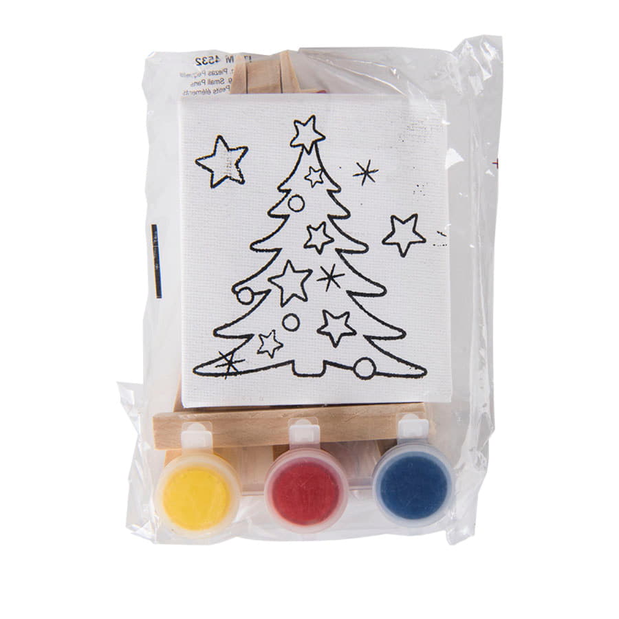в наборе: холст, мольберт, кисть, краски 3шт,