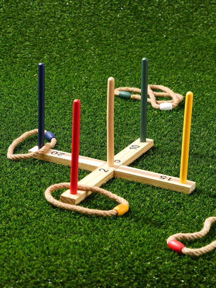 Задача игры очень простая — накинуть кольца на колышки. Можно выбрать простые правила: кто закинет больше колец, тот и победил. Но можно и усложнить, например, считать очки по цифрам рядом с колышками или ввести правило удвоения, если цвет колышка и метки на кольце совпадают.