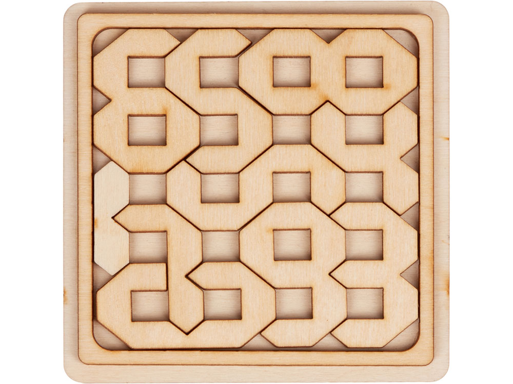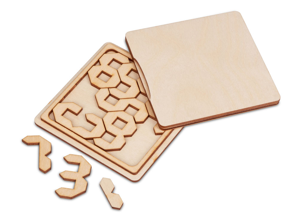 Деревянная головоломка Цифры - прекрасный способ занять себя в дороге. Корпус изготовлен из берёзовой фанеры и используется как игровое поле, не занимая много места в сумке.