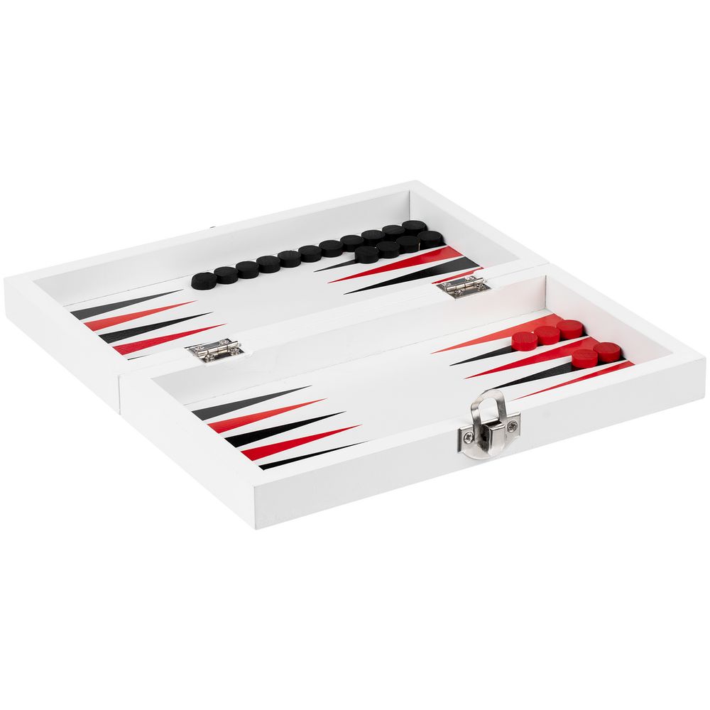 На внутренней стороне доски расположено поле для игры в нарды, на внешней — для шахмат и шашек. Компактная складная доска позволяет хранить все фигуры внутри, что делает данный набор идеальным компаньоном как для домашних вечеров, так и для путешествий.Упаковано в индивидуальную коробку.