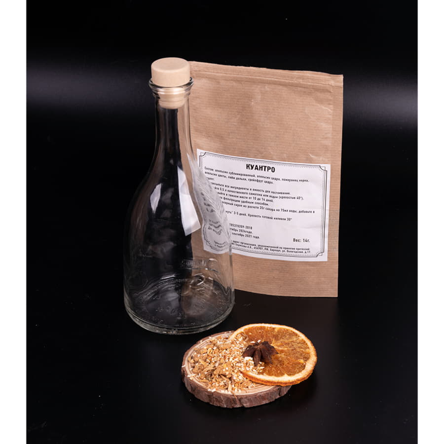 Куантро — французский крепкий прозрачный ликер с ароматом корочек сладких и горьких апельсинов и померанцев. Пьют Куантро сильно охлажденным до 4-6°C маленькими глотками из классических ликерных рюмок. Хорошо сочетается с охлажденным апельсиновым и грейпфрутовым соками в любых пропорциях. Состав: апельсин сублимированный, апельсин цедра, померанец корка, апельсин цветы, лайм дольки, грейпфрут цедра.