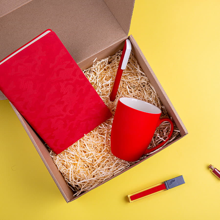 В набор входят: бизнес-блокнот TABBY FUNKY (арт. 21225/08), кружка (арт. 23500/08), шариковая ручка FLOW PURE (арт. 29401/08), коробка BIG BOX (арт. 21024), стружка