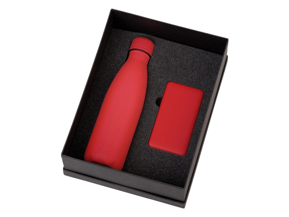 повербанк- пластик с покрытием soft-touch, термобутылка- нержавеющая cталь с покрытием soft-touch