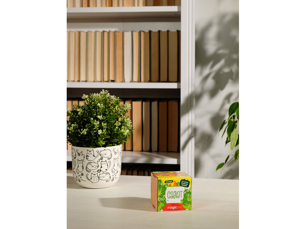 Экокуб Magicme в его минималистичном дизайне впишется в интерьер офиса или дома. Деревянный куб отличается экологическим составом благодаря использованию берёзовой древесины и универсальной краске на водной основе, что позволяет выращивать растение не только взрослым, но и детям.