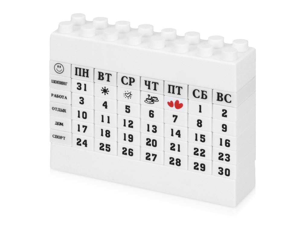 Замечательная и креативная идея для активных и целеустремленных людей. Вечный календарь в виде конструктора подчеркнет индивидуальность обладателя и поможет держать ритм жизни под контролем. Календарь поможет в планировании рабочего и свободного времени, ведь кубики можно собирать так, как вы того хотите, учитывая ваши планы и приоритеты.