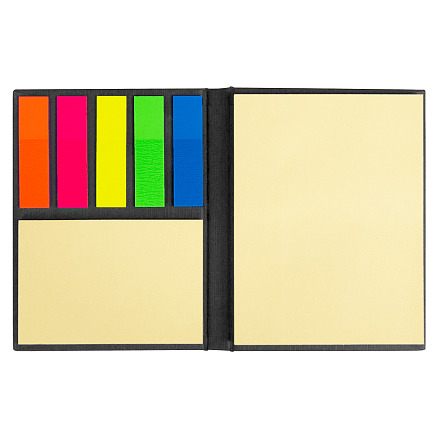 - Клейкие пластиковые закладки в 5 цветах по 25 штук (размер: 46 × 12 мм) помогут выделить важные моменты в записях.