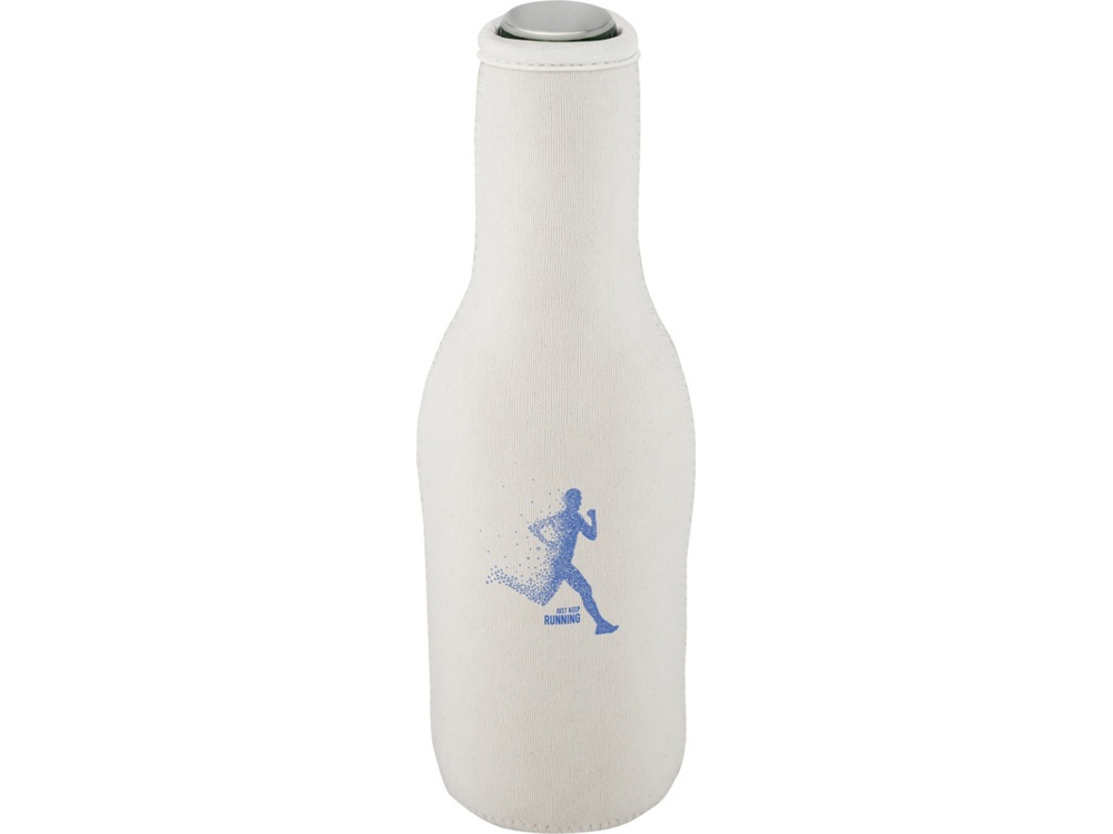 Рукав-держатель для бутылок из переработанного неопрена легко складывается и помещается в кармане или сумочке. Он имеет дополнительную изоляцию, которая сохраняет напиток прохладным в течение длительного времени, а также благодаря ей бутылку комфортно держать.