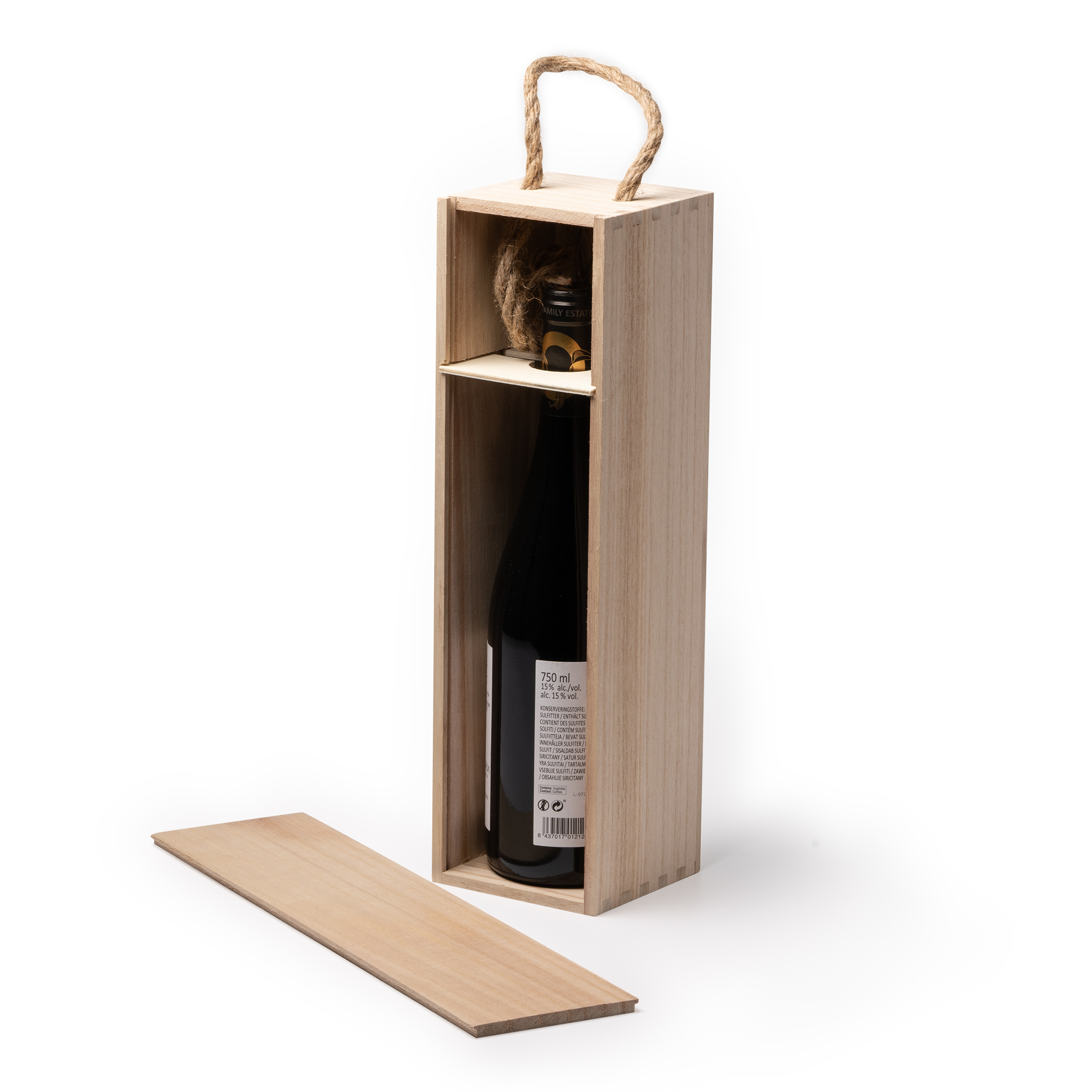 Деревянный ящик с ручкой станет идеальным дополнением для безопасной и элегантной транспортировки бутылки вина.