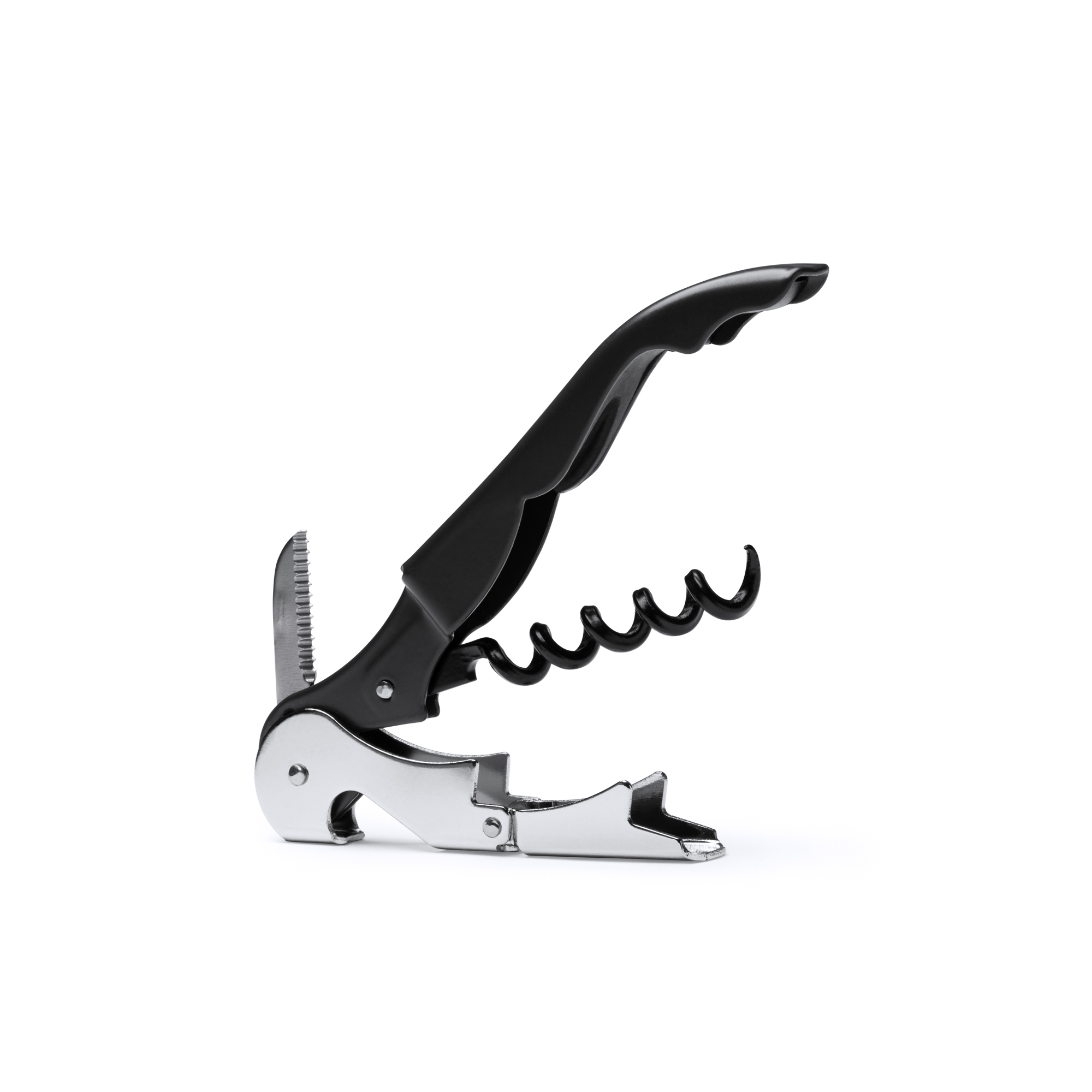 Классический штопор из нержавеющей стали с двумя положениями. Поставляется в белой коробке.
