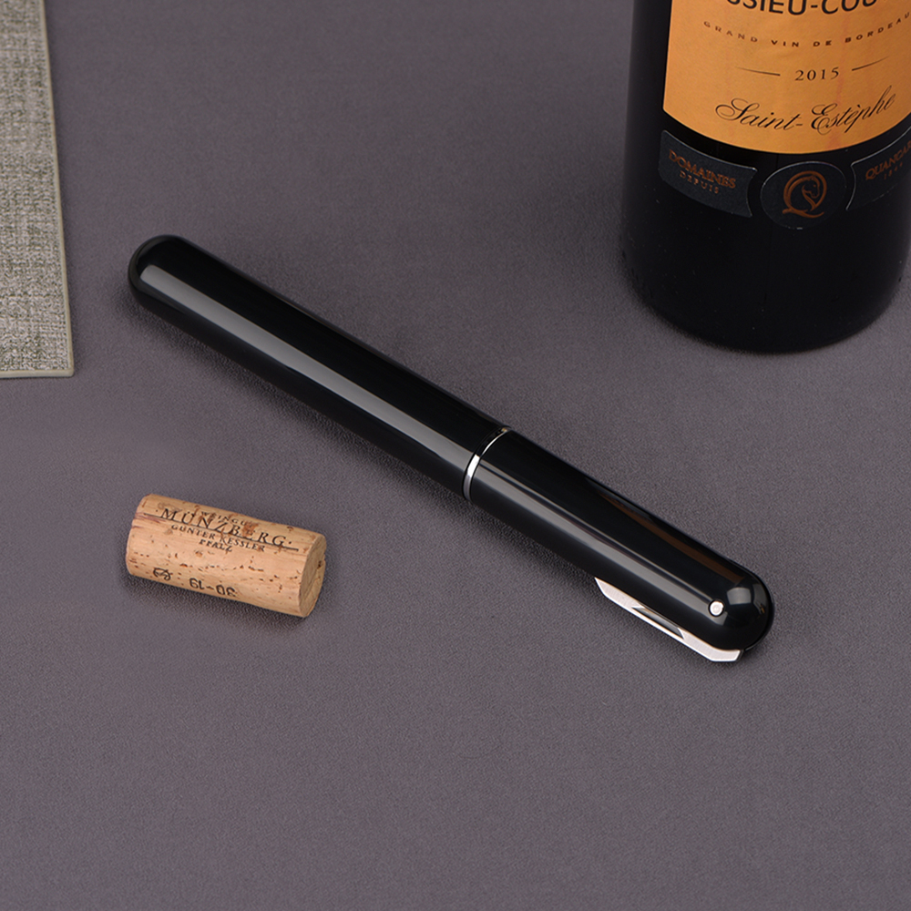 Компактный вакуумный штопор для вина с ножом. В отличии от механического штопора, вакуумный штопор не требует больших усилий и всегда готова к использованию. Так же он не крошит пробку. Оригинальный подарок в набор бармена.