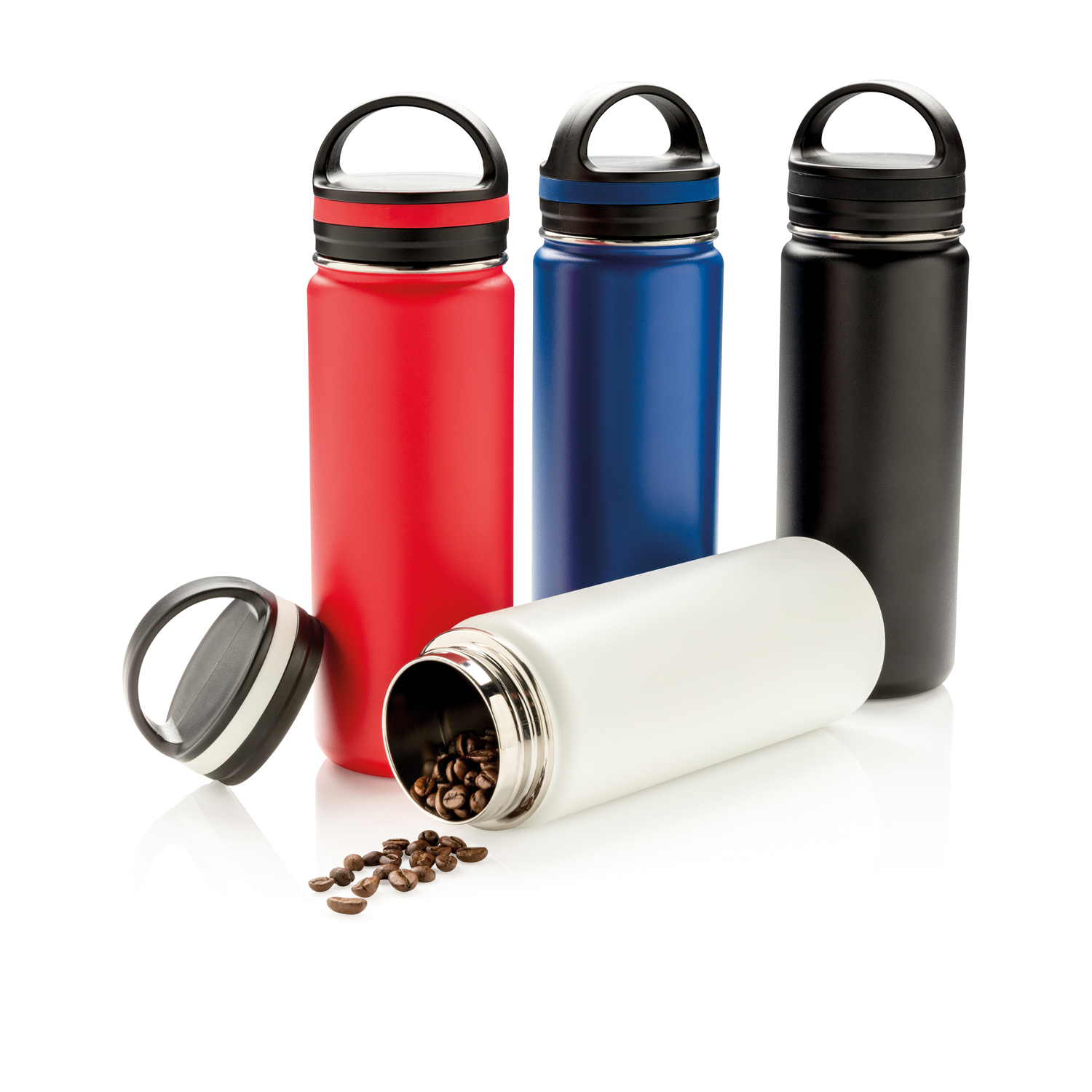 Герметичная вакуумная бутылка с двойными стенками и удобной ручкой черного цвета, изготовленная из нержавеющей стали с порошковым покрытием. Широкое горлышко для легкого наполнения и очистки. Идеально подходит для длительных прогулок, пляжного отдыха или даже офиса. Внутренний слой из стали марки 304 и внешний марки 201 сохраняет ваши напитки горячими до 5 часов и холодными до 15 часов. Объем: 500 мл.