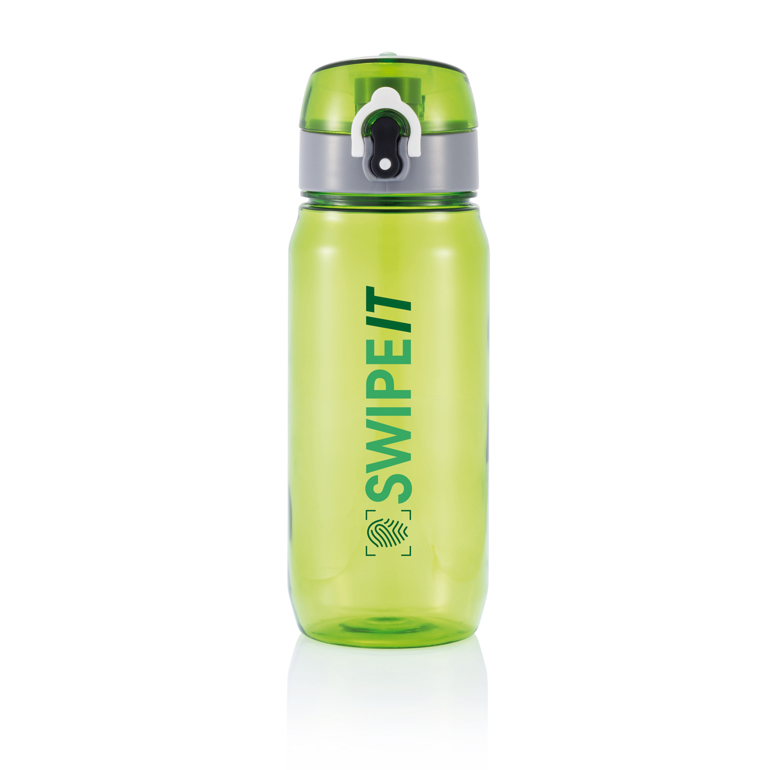 Бутылка для воды Tritan объемом 600 мл. Прозрачная бутылка из экологичного материала, который не впитывает запахи и не содержит бисфенол. У бутылки удобная крышка, которая открывается нажатием на кнопку, есть фиксатор, который не позволит бутылке случайно открыться во время движения. В комплект входит ремешок для запястья.