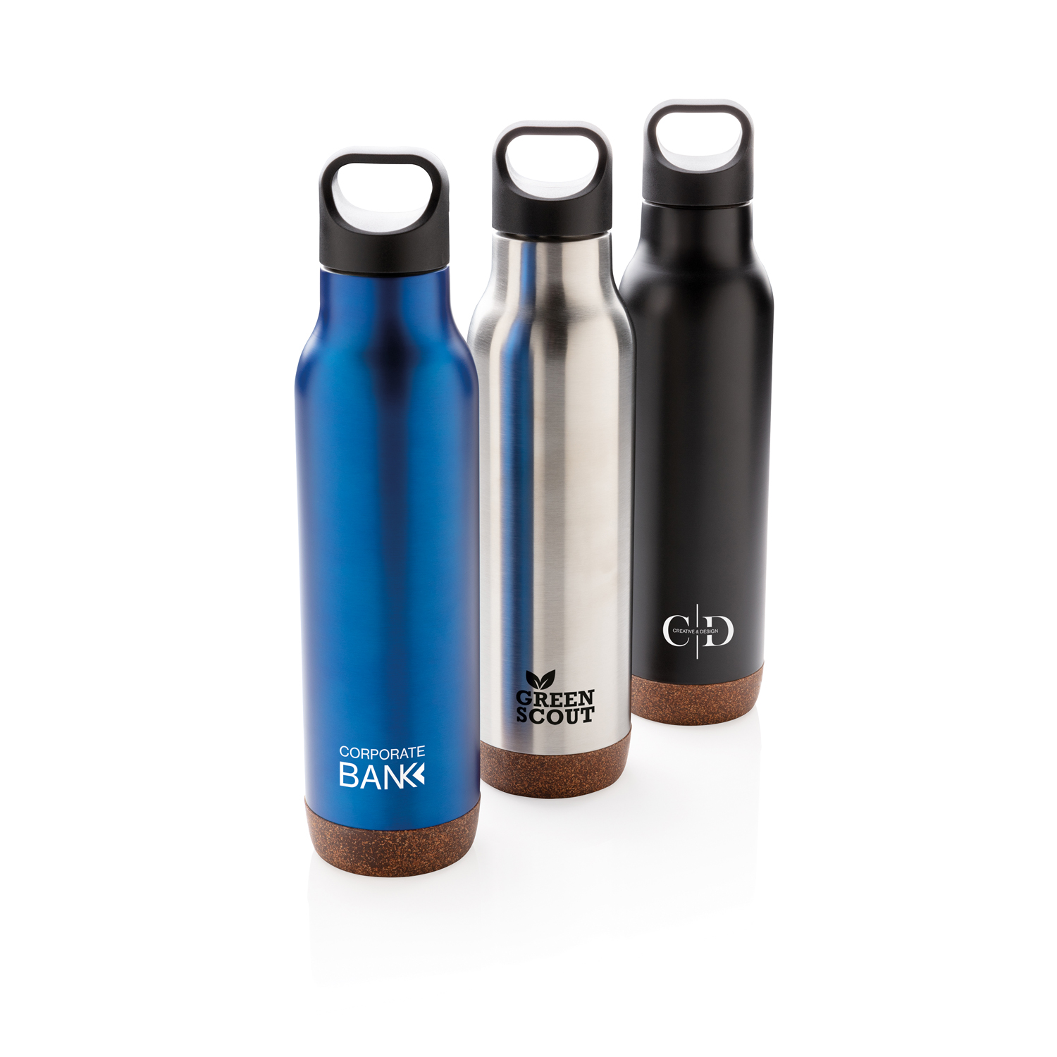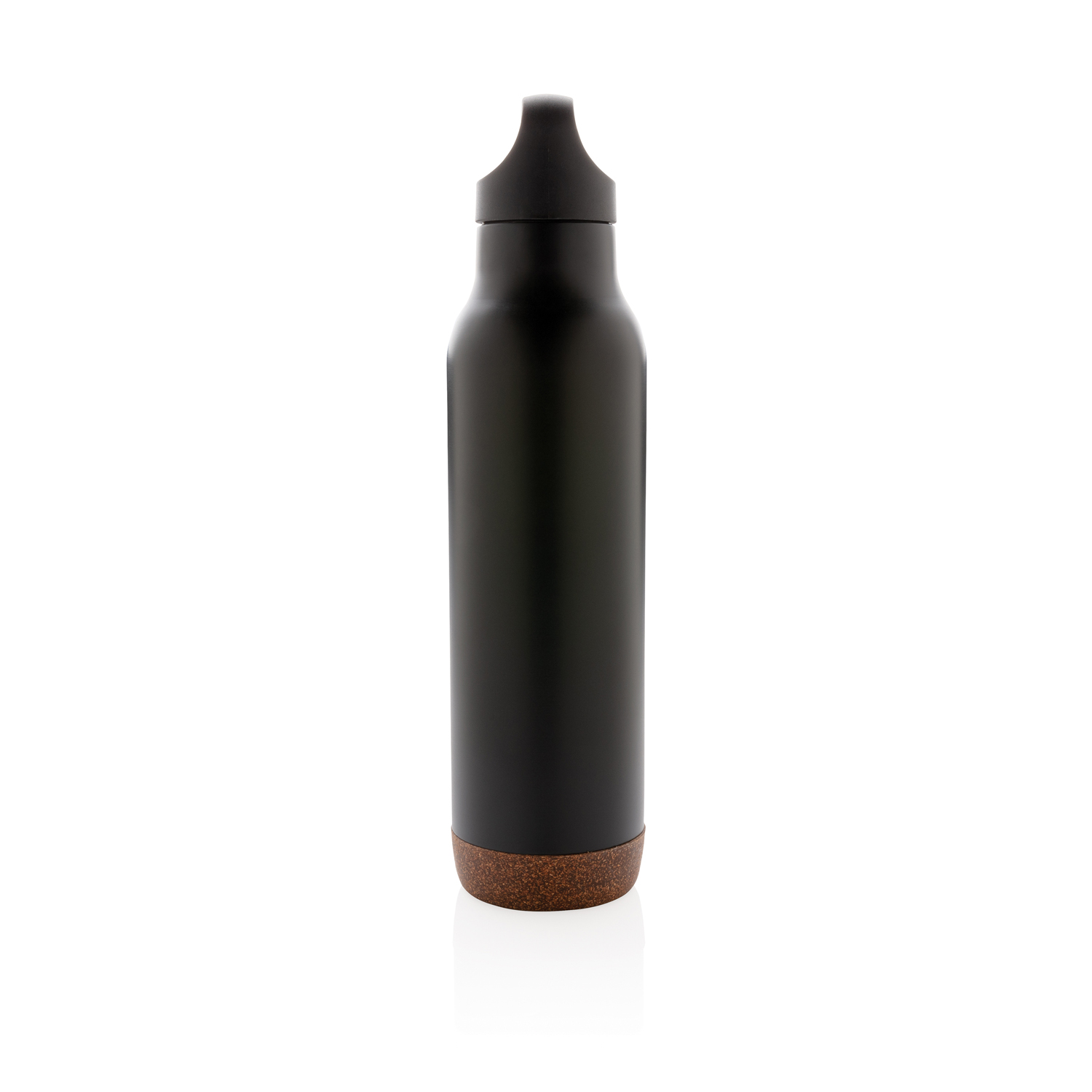 Герметичная вакуумная бутылка. Внутренняя стенка бутылки выполнена из нержавеющей стали марки 304, внешняя – из нержавеющей стали марки 201. Низ бутылки сделан из коры пробкового дуба – одного из самых лёгких, натуральных природных материалов. Пробка - 100% экологичный материал, а главное, что его производство не вредит деревьям. Благодаря своим уникальным свойствам пробка не впитывает влагу, обладает хорошей термоизоляцией и приятна на ощупь. Бутылка сохранит ваши напитки теплыми до 5 часов и прохладными до 15 часов. Объем: 600 мл.