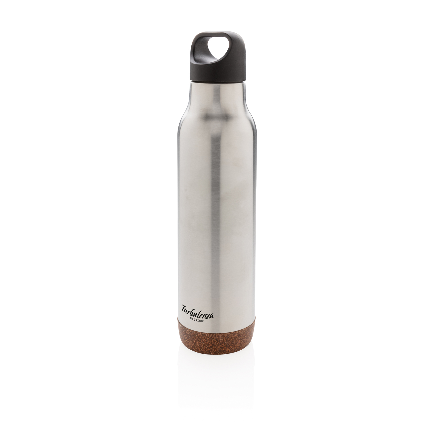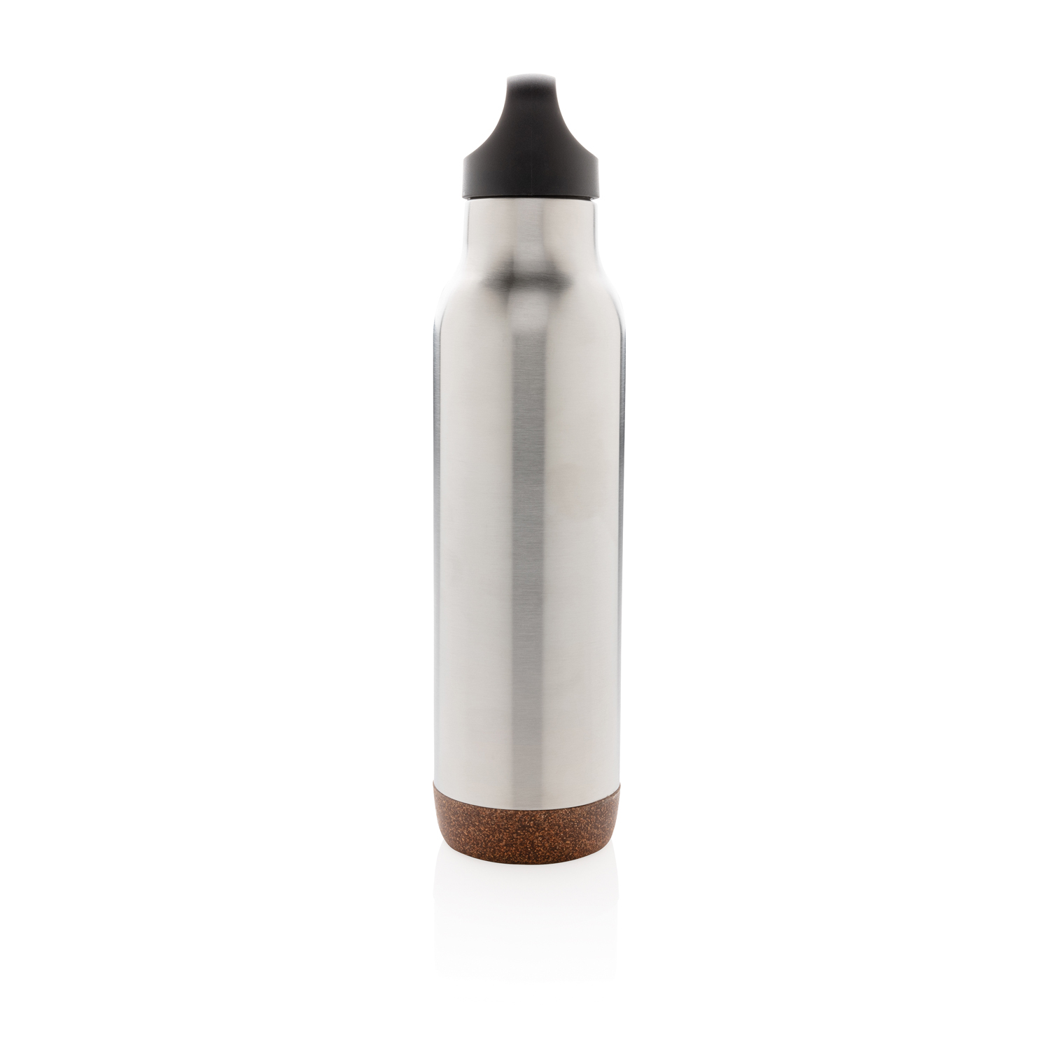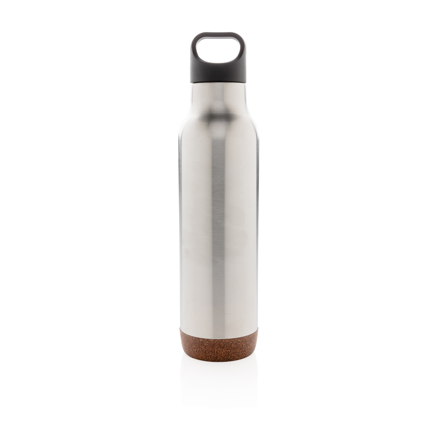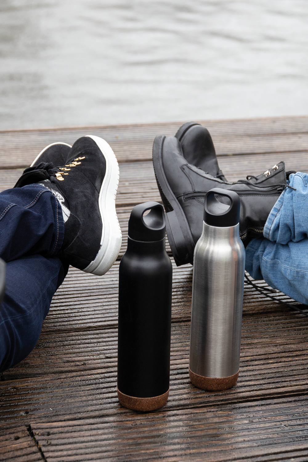 Герметичная вакуумная бутылка. Внутренняя стенка бутылки выполнена из нержавеющей стали марки 304, внешняя – из нержавеющей стали марки 201. Низ бутылки сделан из коры пробкового дуба – одного из самых лёгких, натуральных природных материалов. Пробка - 100% экологичный материал, а главное, что его производство не вредит деревьям. Благодаря своим уникальным свойствам пробка не впитывает влагу, обладает хорошей термоизоляцией и приятна на ощупь. Бутылка сохранит ваши напитки теплыми до 5 часов и прохладными до 15 часов. Объем: 600 мл.