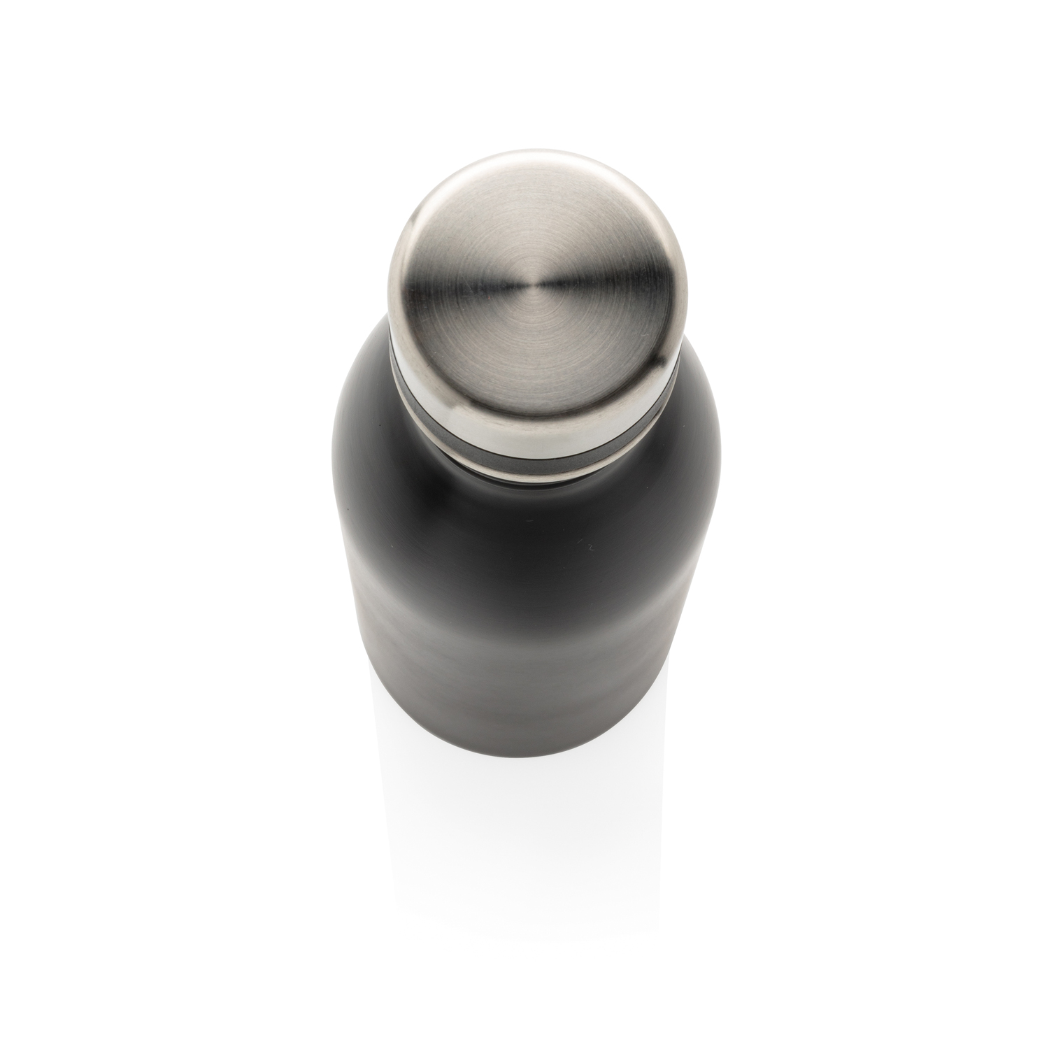 Эта удобная и легкая бутылка выполнена из стали марки 18/8, которая содержит 18% хрома и 8% никеля. В составе такой стали отсутствуют токсичные вещества. Сталь не выделяет запахов и не впитывает их. Бутылка полностью герметична и идеально подойдет для использования в повседневной жизни. Только для холодной воды. Объем: 500 мл.
