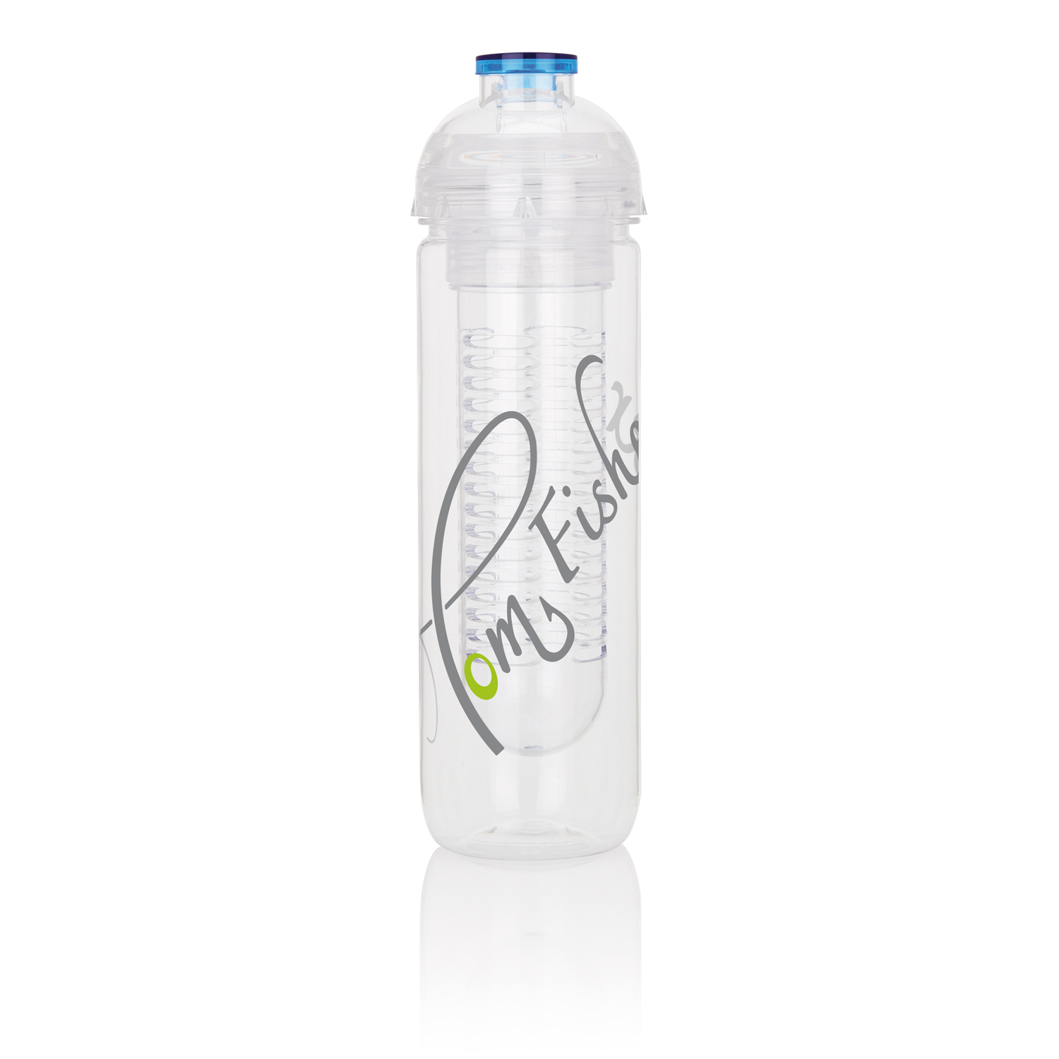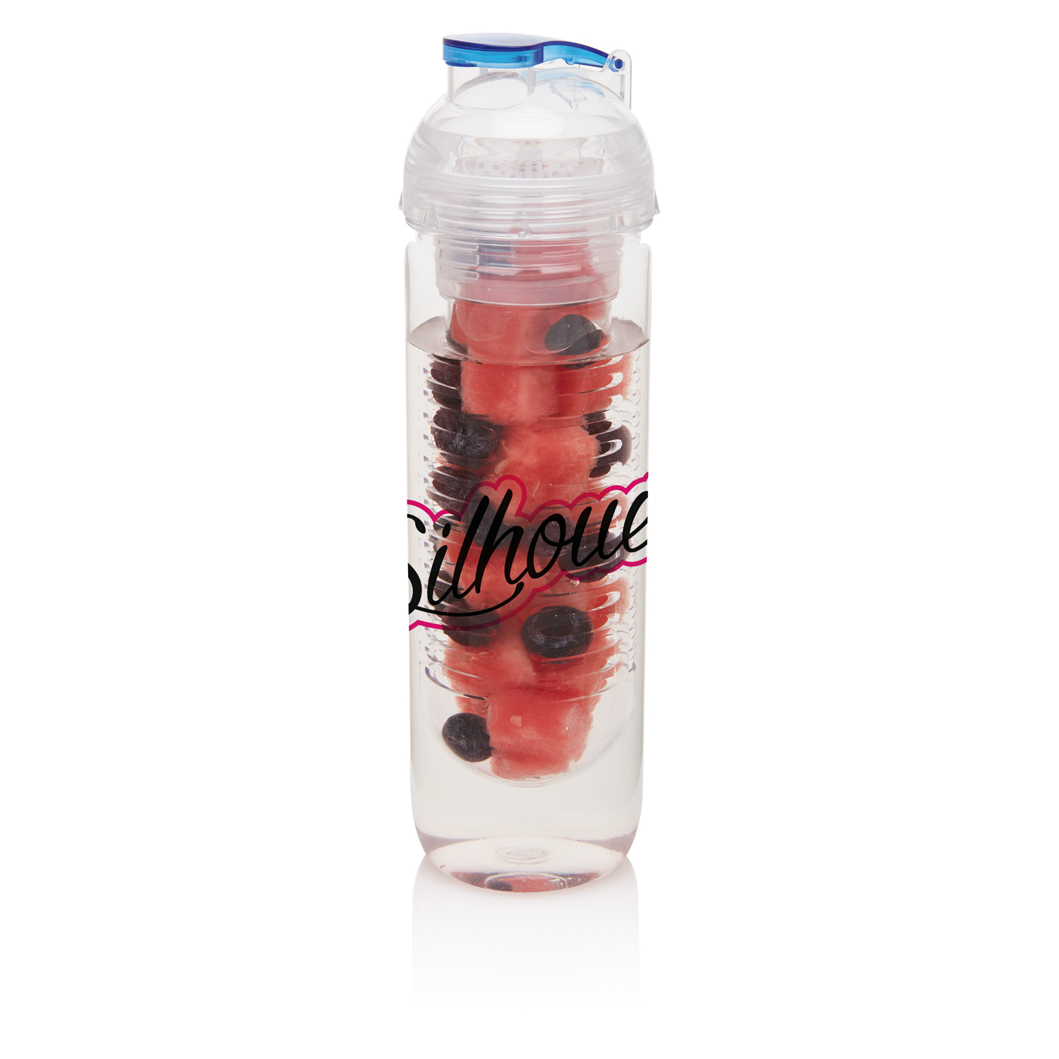Бутылка для воды объемом 500 мл изготовлена из экологичного материала Tritan, который безвреден для человека, не впитывает запахи и не содержит BPA. В бутылке предусмотрен удобный контейнер для фруктов, который позволит делать вкусные миксы из воды и свежих фруктов, а также в него можно класть кусочки льда для охлаждения напитка.