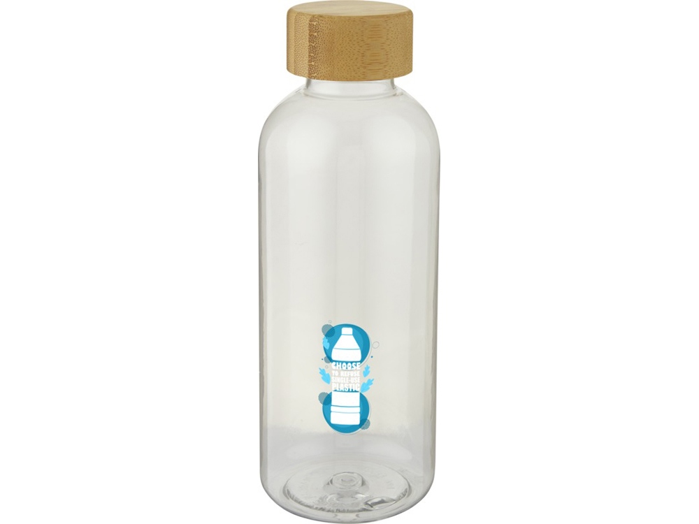 Одностенная спортивная бутылка из 100% переработанного пластика со стильной бамбуковой крышкой. Не содержит БФА, испытана и одобрена в соответствии с немецким законодательством о безопасности пищевых продуктов (LFGB). Проверена на содержание фталатов и одобрена для использования в соответствии с правилами REACH. Бамбук используется из устойчивых, экологически и социально ответственных источников. Объем 650 мл. Рекомендуется мыть вручную. В подарочной коробке из переработанного картона. Переработанный PET пластик, Бамбуковое дерево, Пластик PP. #?0:>2:0: FSC Mix Credit P5.1 CU-COC-877277.