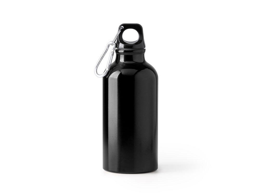 Бутылка из переработанного алюминия с карабином. Емкость 400 мл. Карабин для более удобной переноски бутылки, не рекомендуется для лазания.