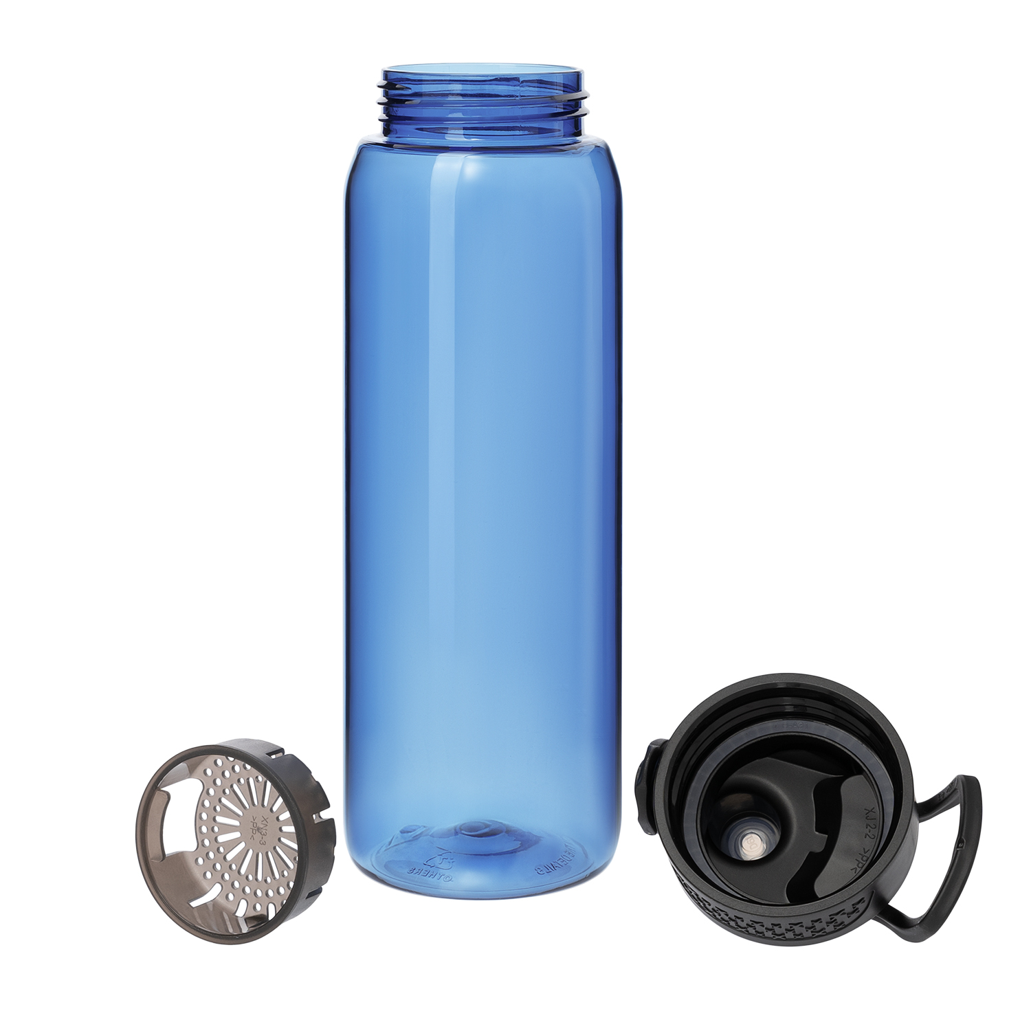 Благодаря широкому горлышку и встроенному ситечку-фильтру в бутылку можно добавлять различные ягоды или фрукты – кусочки не будут попадать в питьевое горлышко.—