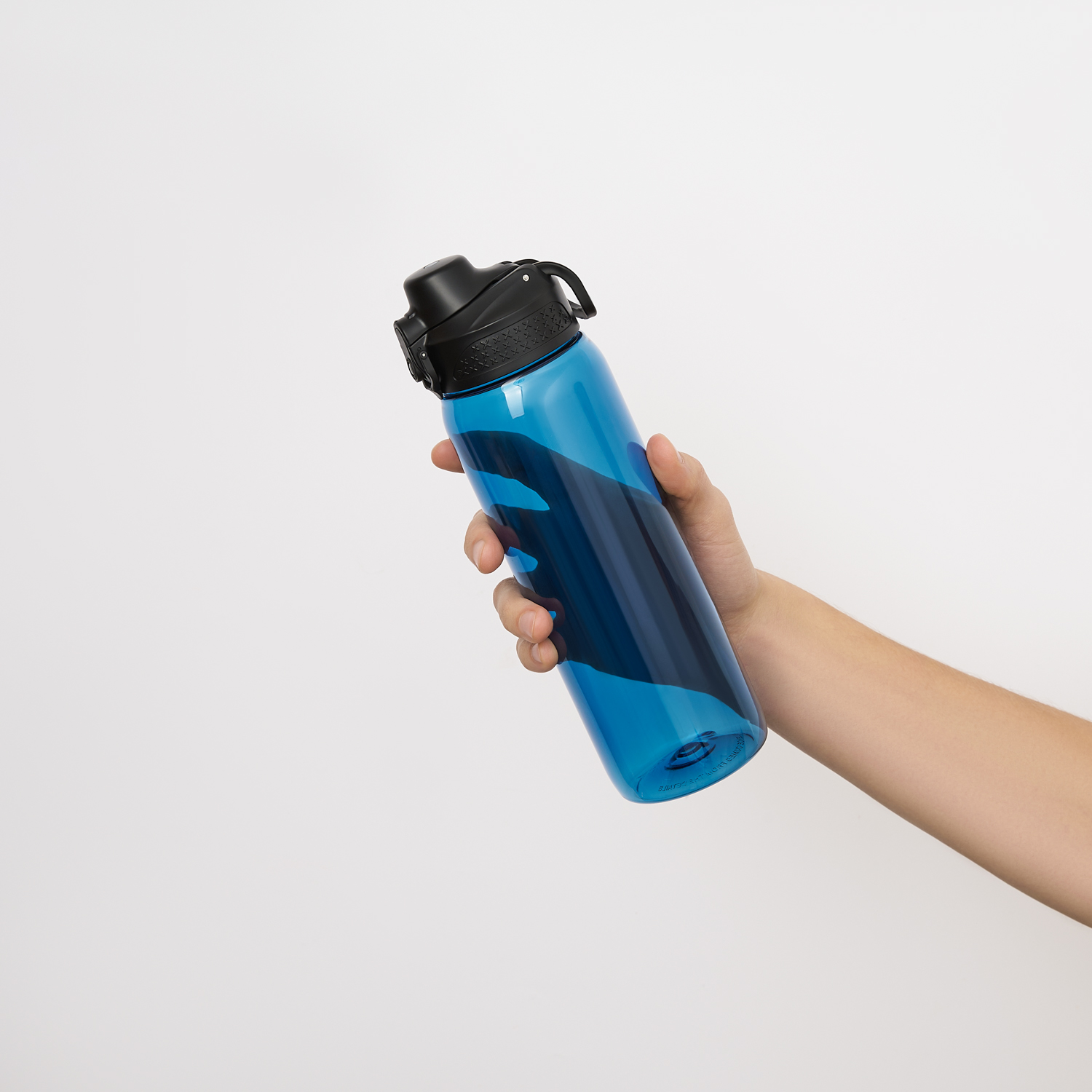 Благодаря универсальному размеру бутылку удобно брать с собой, положив в небольшую сумку или рюкзак. Рифленая вставка на крышке обеспечивает надежный захват и препятствует скольжению, а пластиковая ручка сделает доступным комфортную переноску.