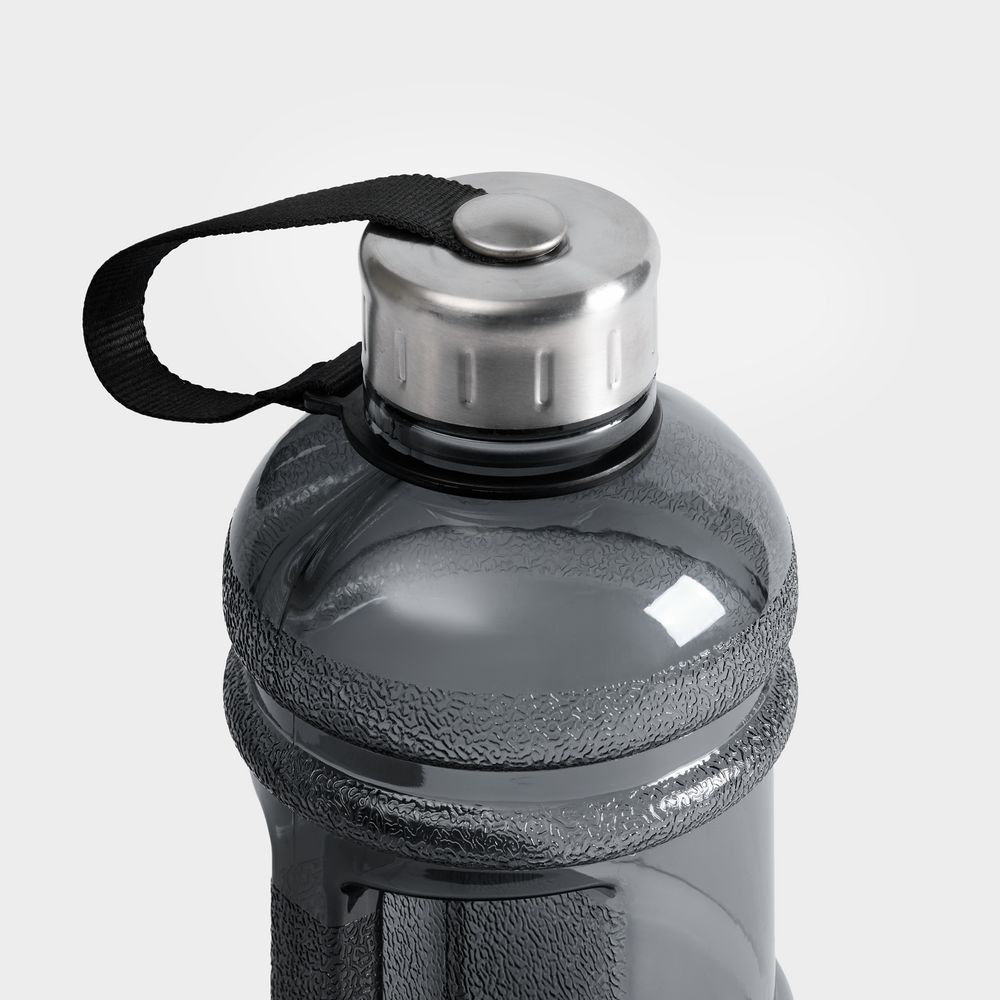 Бутылку удобно удерживать за большую ручку: можно быстро подхватывать ее во время тренировки. Крышка с уплотнительным кольцом препятствует протеканию жидкости, а ремешок не позволяет ей потеряться в процессе использования. Полупрозрачный цветной корпус выполнен из пищевого пластика, гигиенически и экологически безопасного.