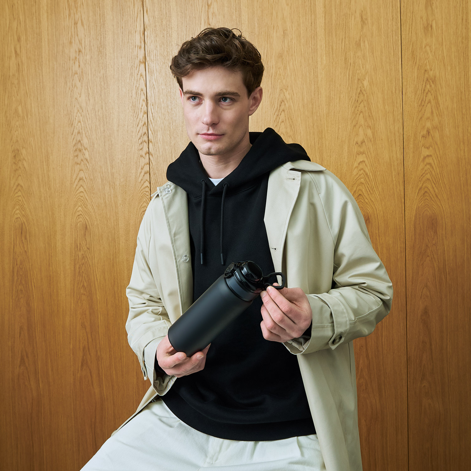 Объём 800 мл оптимален для повседневного использования. Эргономичная форма и покрытие Soft Touch обеспечивают приятные тактильные ощущения и надёжный захват. Клапан с фиксатором защищает от случайного открытия, а антискользящая вставка на крышке делает использование особенно удобным в движении. Поворотная пластиковая ручка облегчает переноску и позволяет зафиксировать бутылку на рюкзаке или сумке — практичное решение в активном ритме дня.