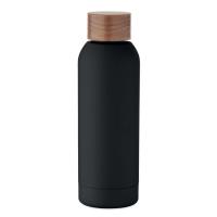 Термобутылка из переработанной нержавеющей стали 90% и 10% нержавеющей стали с резиновым покрытием и крышкой из древесины акации. Герметичная. Емкость: 700 мл. Стенки бутылки могут нагреваться.