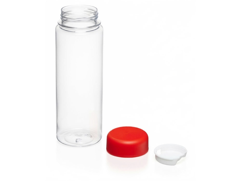 Лаконичный внешний вид позволяет нанести на аксессуар логотип компании. Прозрачный корпус дает возможность контролировать количество содержимого. Благодаря съемному фильтру в воду можно добавлять лимон, мяту и фрукты. Силиконовое кольцо предотвращает протекание, а крышка надежно закрывает бутылку.