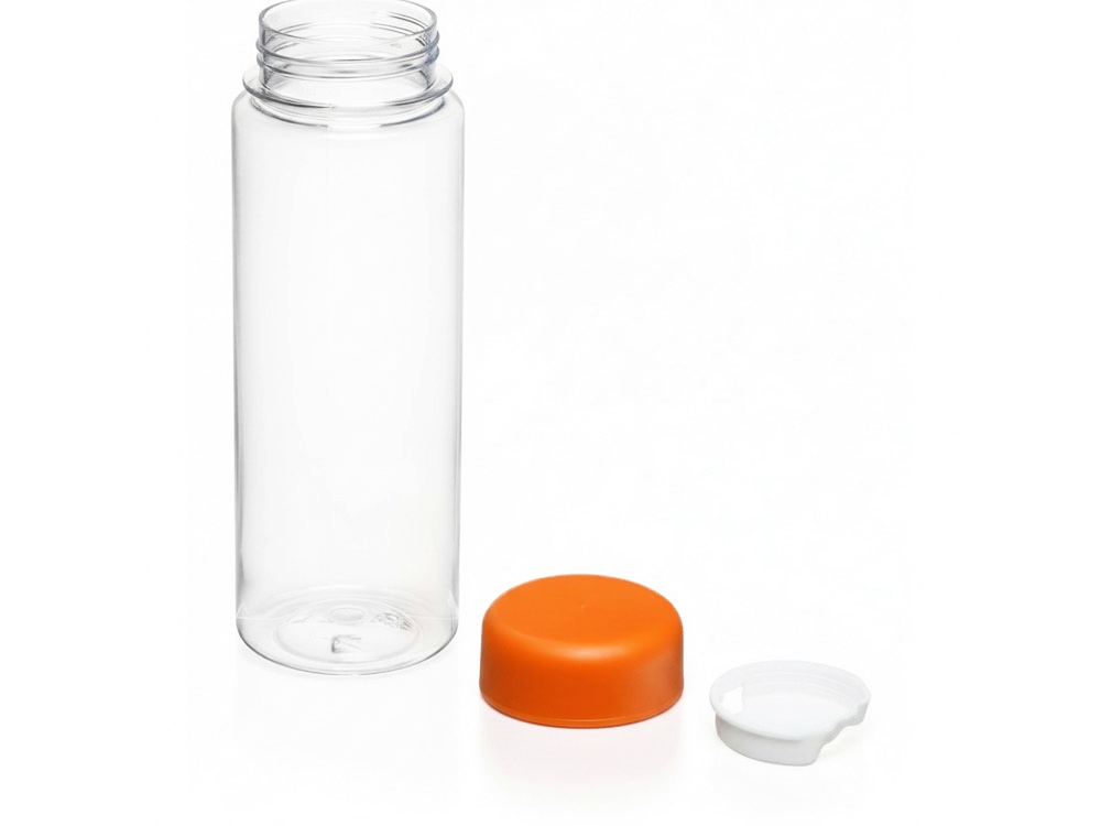 Лаконичный внешний вид позволяет нанести на аксессуар логотип компании. Прозрачный корпус дает возможность контролировать количество содержимого. Благодаря съемному фильтру в воду можно добавлять лимон, мяту и фрукты. Силиконовое кольцо предотвращает протекание, а крышка надежно закрывает бутылку.