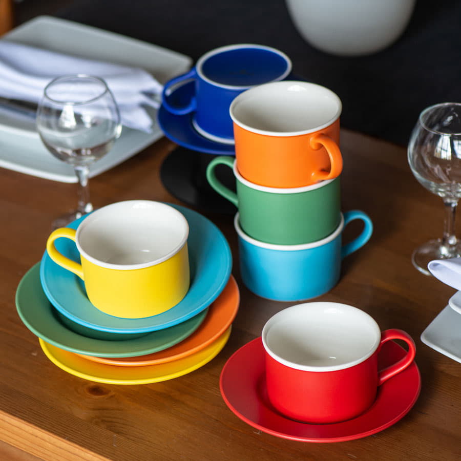 Эта чайная пара – яркий и стильный акцент любого офиса или дома. Ровная форма чашки с гладким матовым покрытием напоминает всеми любимый вафельный стаканчик с мороженым, отсюда и «сладкое» название комплекта – ICE CREAM.