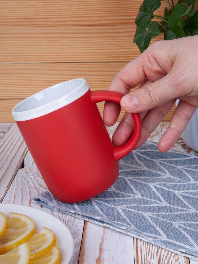 Матовая кружка Borde с белым глянцевым ободком по краю привлекает внимание ярким дизайном и лаконичной формой. Оптимальный объем и эргономичная ручка делают эту кружку удобной для ежедневного использования.