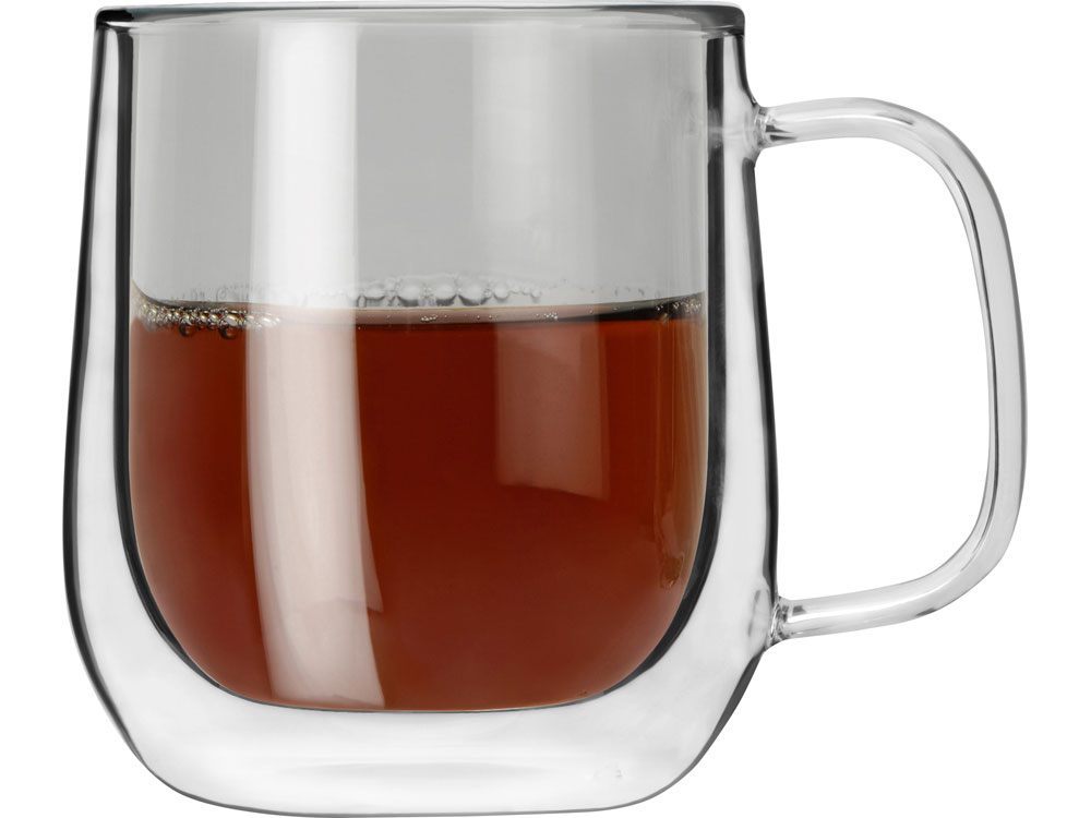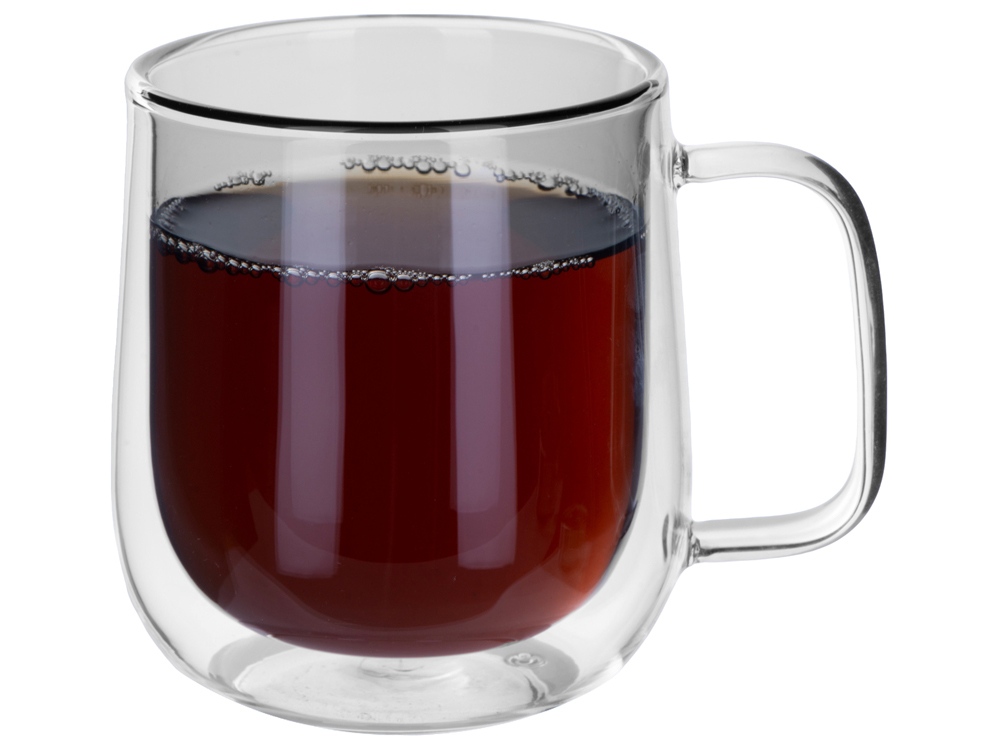 Кружка выполнена из боросиликатного стекла, которое отличается большей прочностью и легкостью, нежели стекло обычное, но при этом столь же безопасно для человека. В этой кружке можно сервировать и горячие, и холодные напитки, поскольку боросиликатное стекло стойко к высоким температурам.