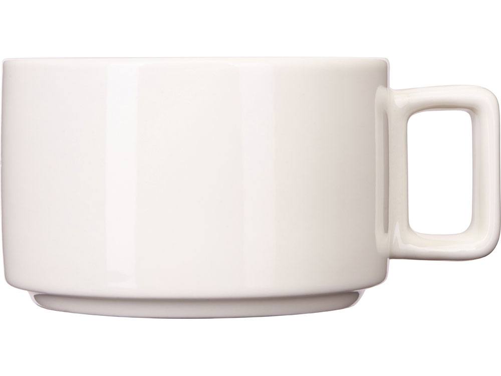 Кружка выполнена из костяного фарфора, отличающегося повышенной прочностью.