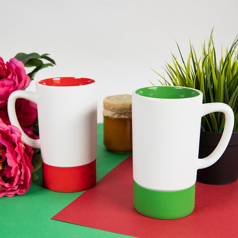 Возможность выбрать донышко любого из предложенных цветов и получить продукт с двумя цветами (внутренняя часть кружки и донышко) - идеально подходит для двухцветных логотипов.