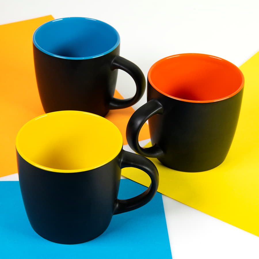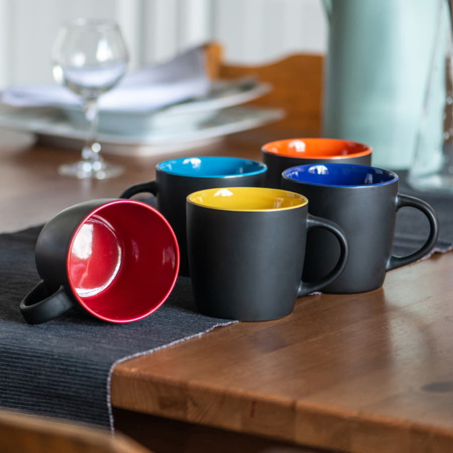 Оригинальная керамическая кружка INTRO объёмом в 350 мл с матовым черным покрытием и яркой цветной внутренней частью будет смотреться эффектно и выразительно на любой поверхности и в любом интерьере.