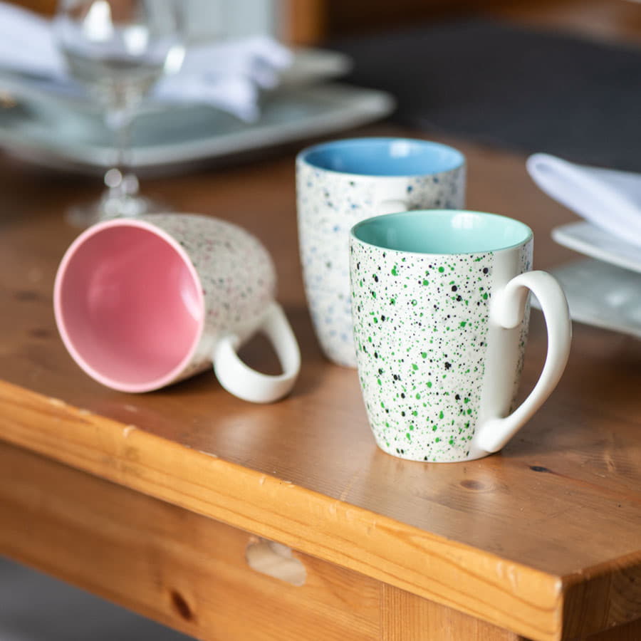Кружка наиболее популярной формы с нежным цветом внутри и новым необычным покрытием снаружи.