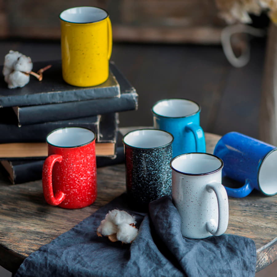 Необычный дизайн кружки получился путем создания эффекта брызг на поверхности. Они нанесены неравномерно и лишь подчеркивают уникальность каждой кружки. Точки краски различной величины напоминают хаотично разбросанные по ночному небу звезды.
