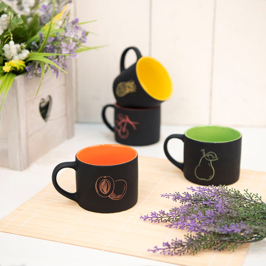 При гравировке подложка вскрывается в цвет внутренней части кружки
