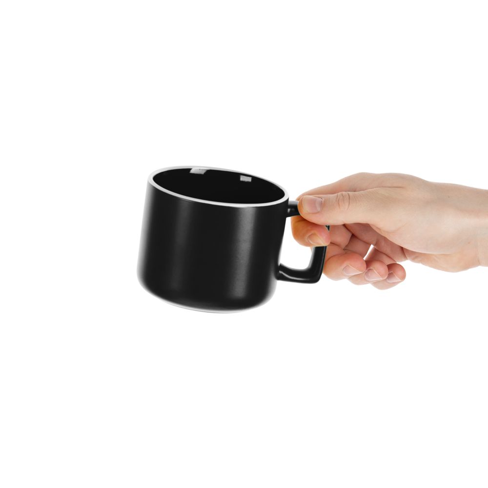 Глазурь спокойных оттенков, матовая снаружи и глянцевая внутри, графичная прямоугольная ручка — с чашкой Fusion не захочется расставаться.