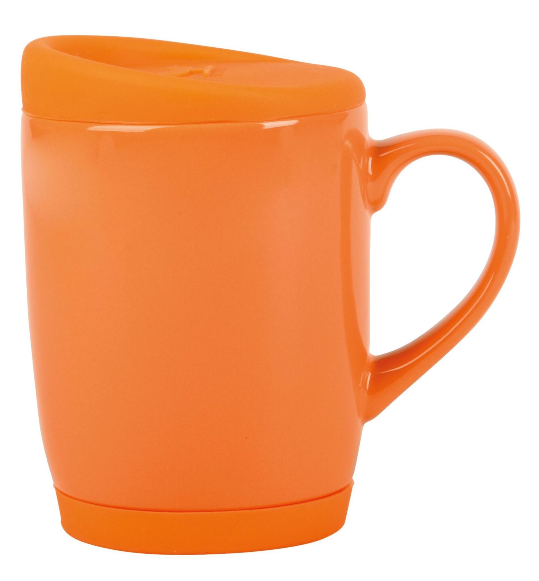 Керамическая кружка EASY DAY со съемной силиконовой подставкой и силиконовой крышкой, предохраняющей от проливания, вместимость ок. 350 мл, в белой коробке