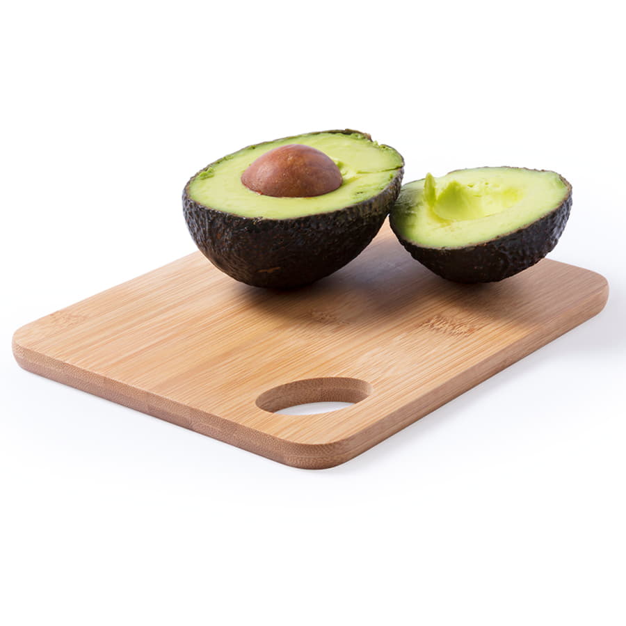 Разделочная доска со скругленными углами и отверстием для удобства использования, выполнена из бамбука. Материал отличается следующими преимуществами:
