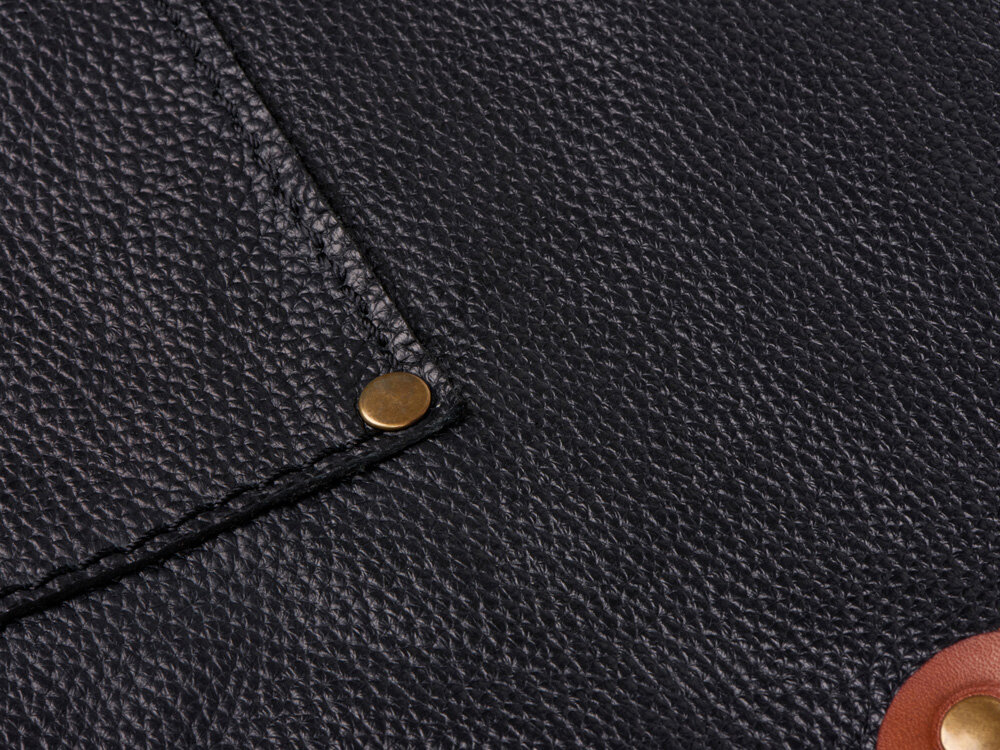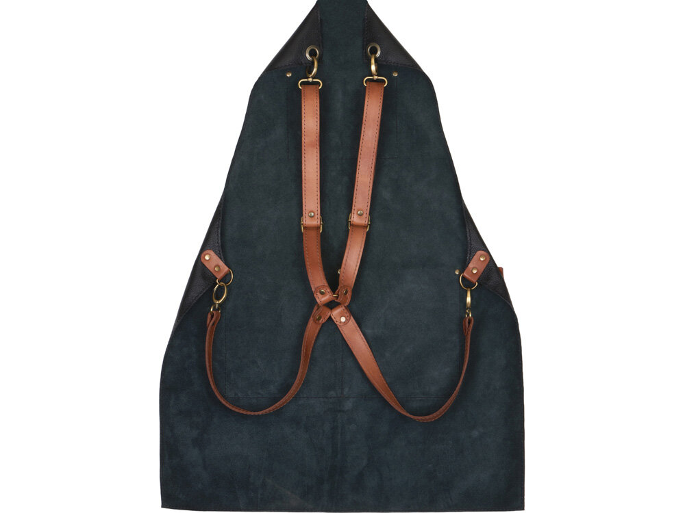 - Цвет: черный фартук с ремнями светлого бука, добавляющими яркий акцент.
