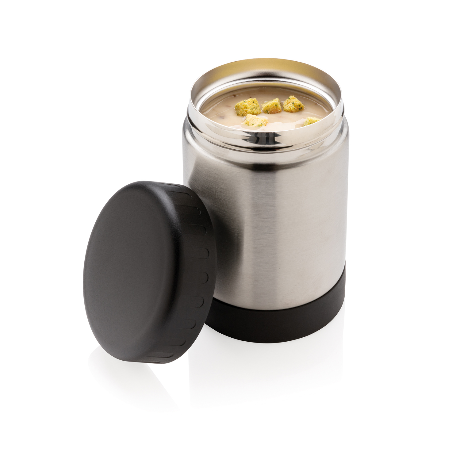 Герметичный вакуумный контейнер для еды сохранит температуру горячих блюд до 5 часов, холодных – до 15 часов. Внутренняя стенка выполнена из нержавеющей стали марки 304, внешняя – из нержавеющей стали марки 201. Объем: 300 мл.