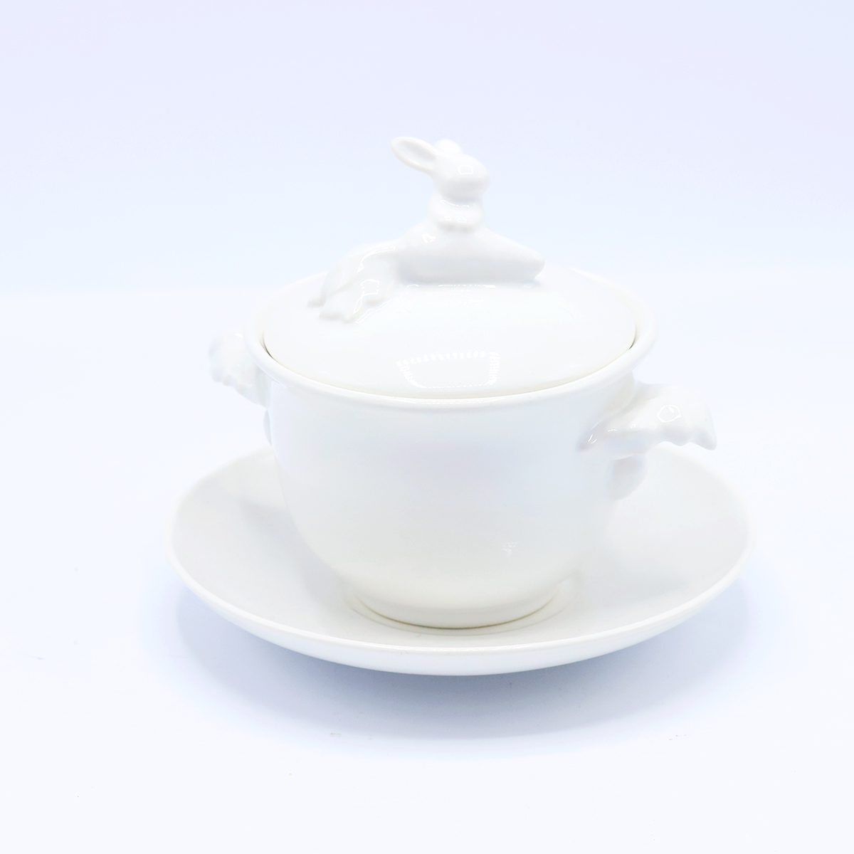 Чашечка горячего ароматного супа со специями - лучшая возможность сохранить хорошее самочувствие в период холодов. Кролик бережно укроет ваш обед крышечкой, и он не остынет, дожидаясь, пока вы закончите работу или ответите на телефонный звонок. Bon appetit! Объем : 425 мл Диаметр блюдца: 18 см В комплекте бульонница с блюдцем Материал - фарфор Производитель: CLAYSTREET, Ростов на Дону