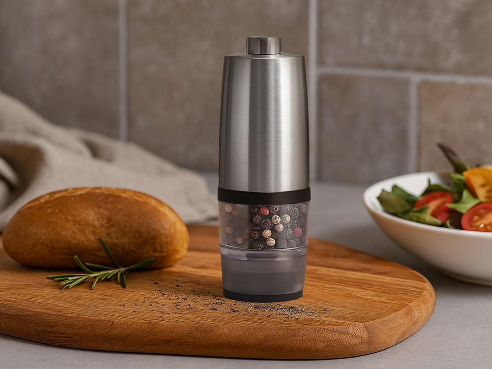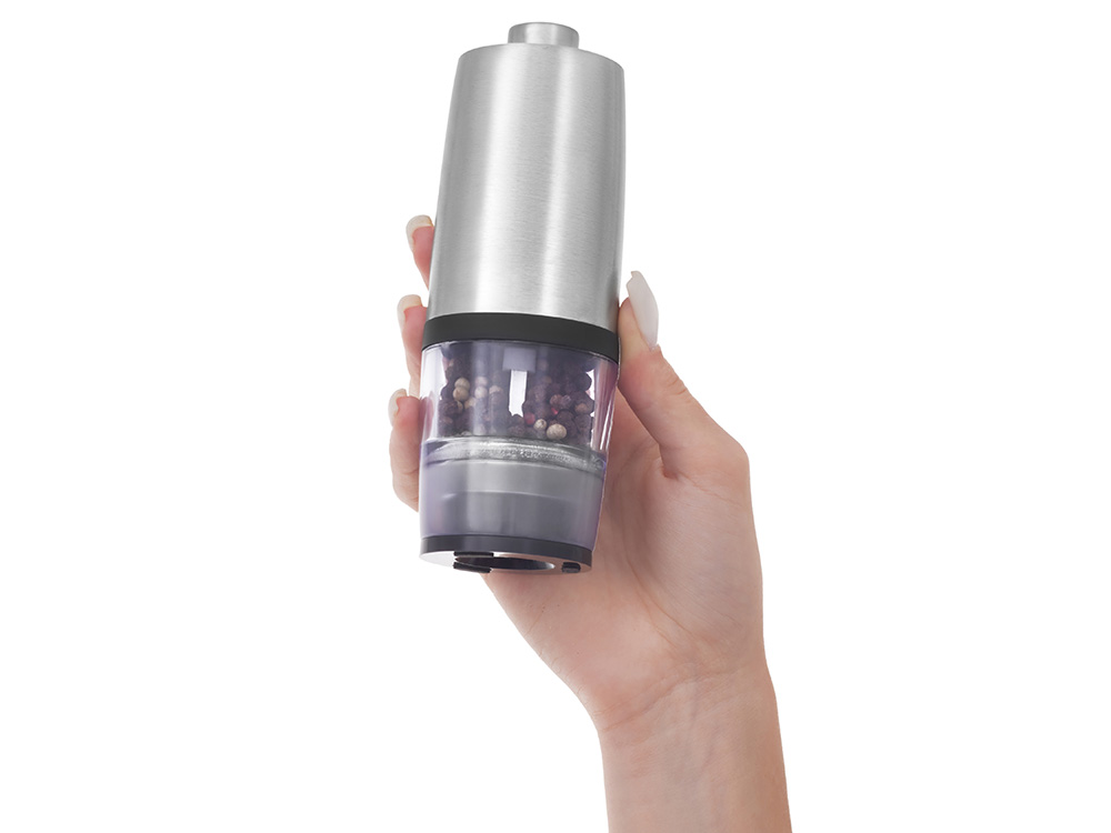 Современная и удобная электрическая мельница для соли, перца и других специй. Работает от 4 батареек AAA (не входят в комплект) — одним нажатием измельчает специи до нужной степени помола.