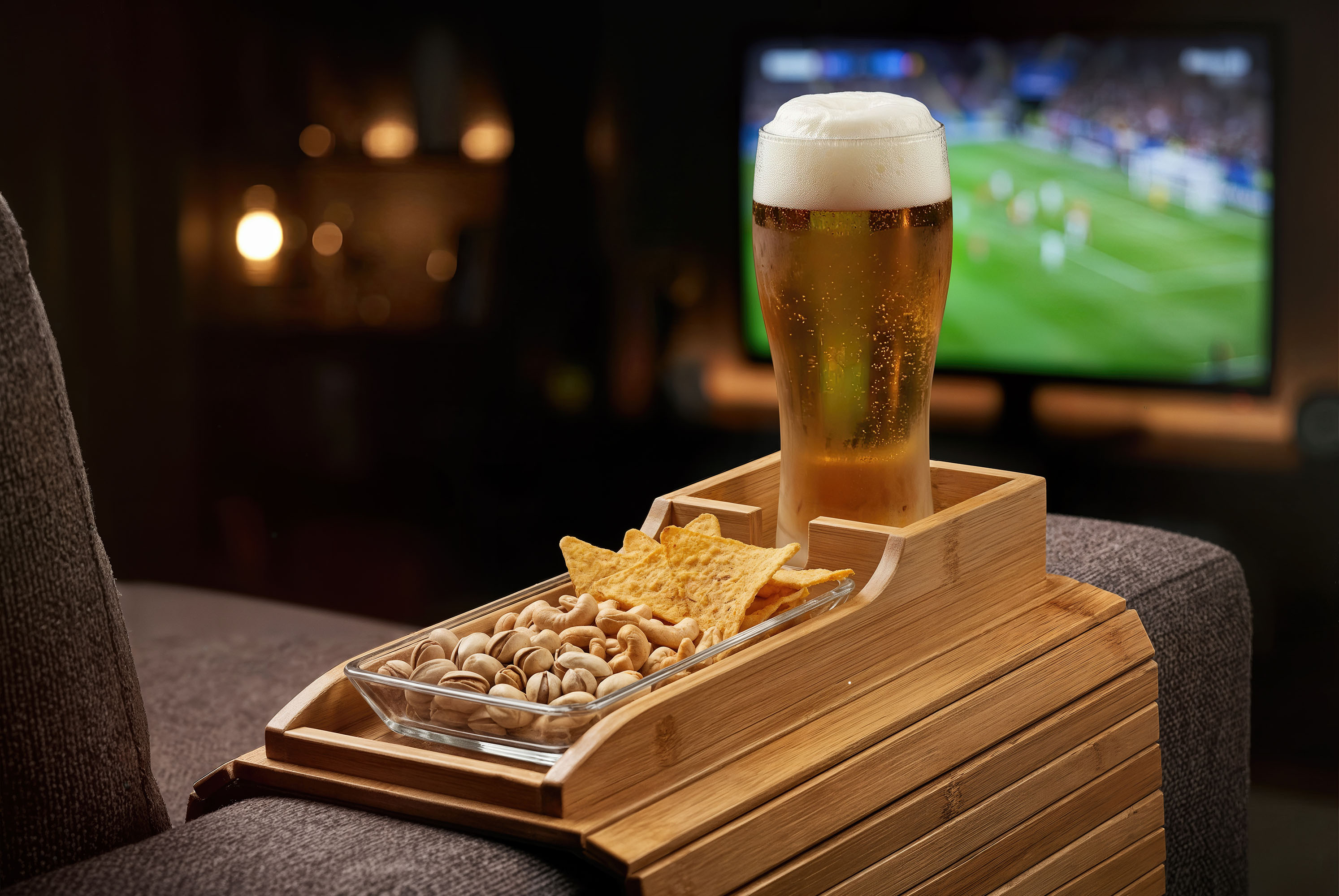 Благодаря реечной конструкции, органайзер можно легко разместить на кресле или диване. Нескользящее основание обеспечивает дополнительную фиксацию на различных поверхностях. Бамбук хорошо смотрится в любом интерьере. "Tray" идеально подходит как для дома, так и для офиса.